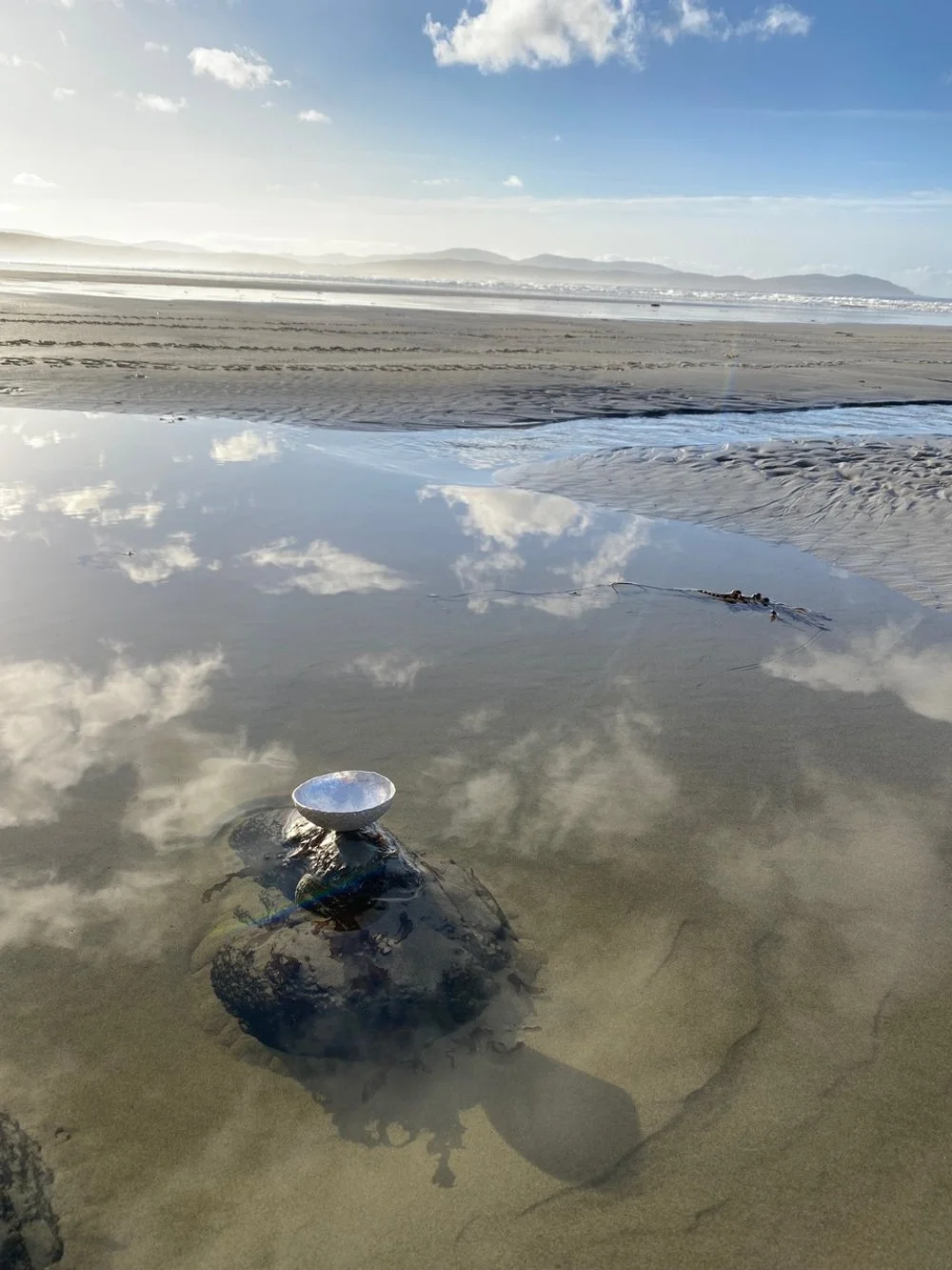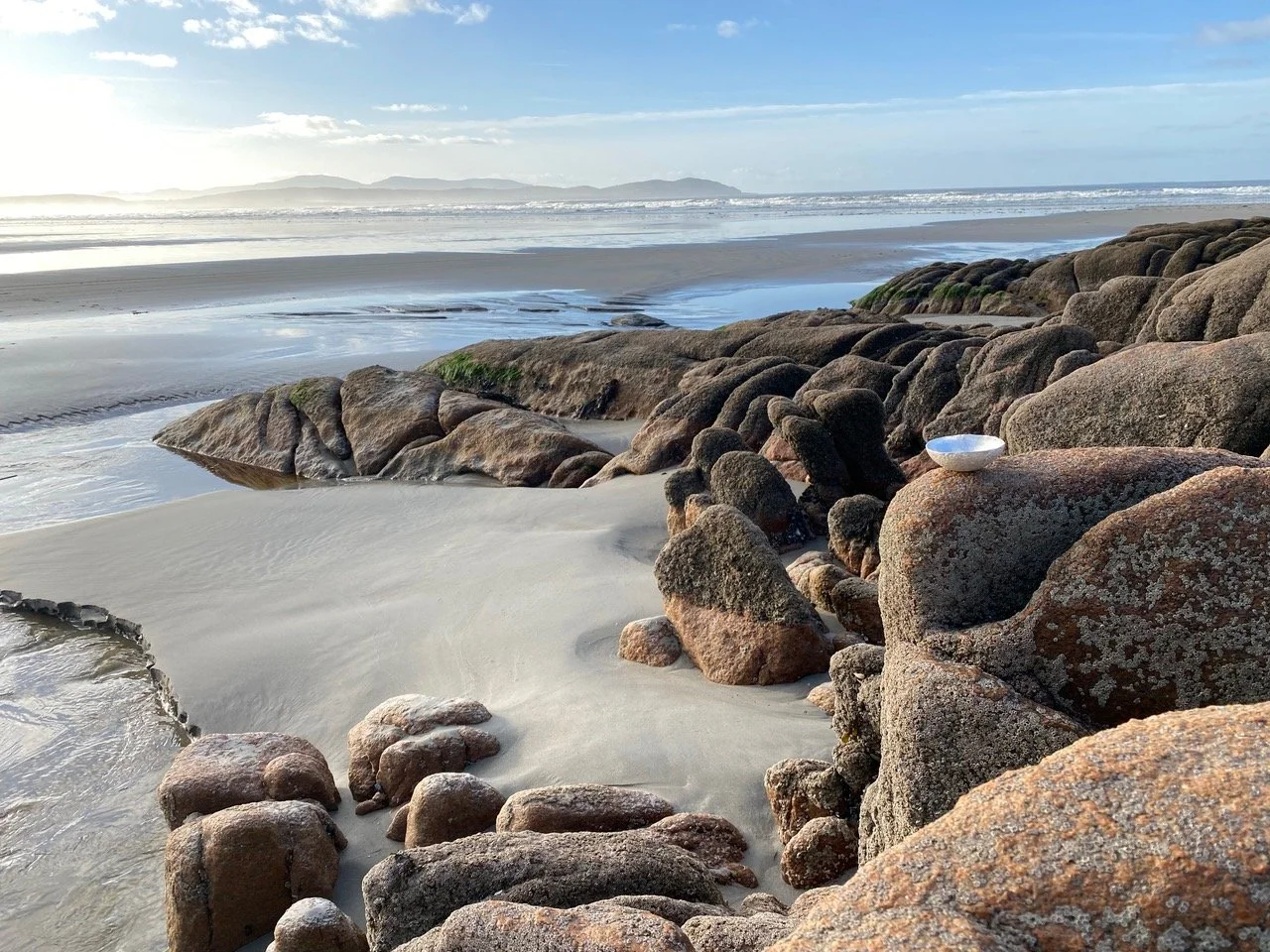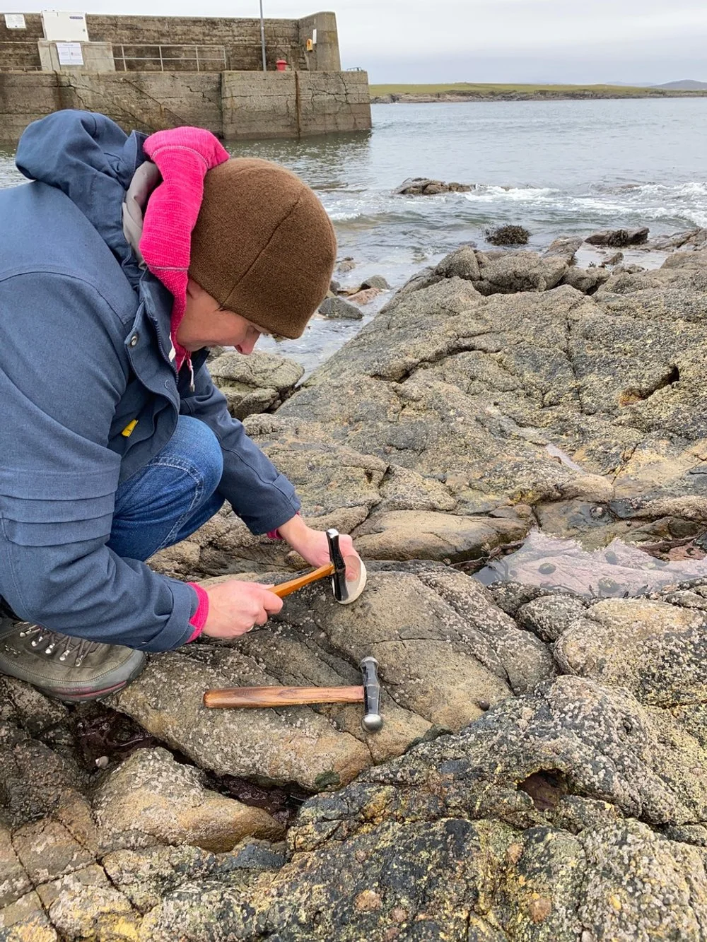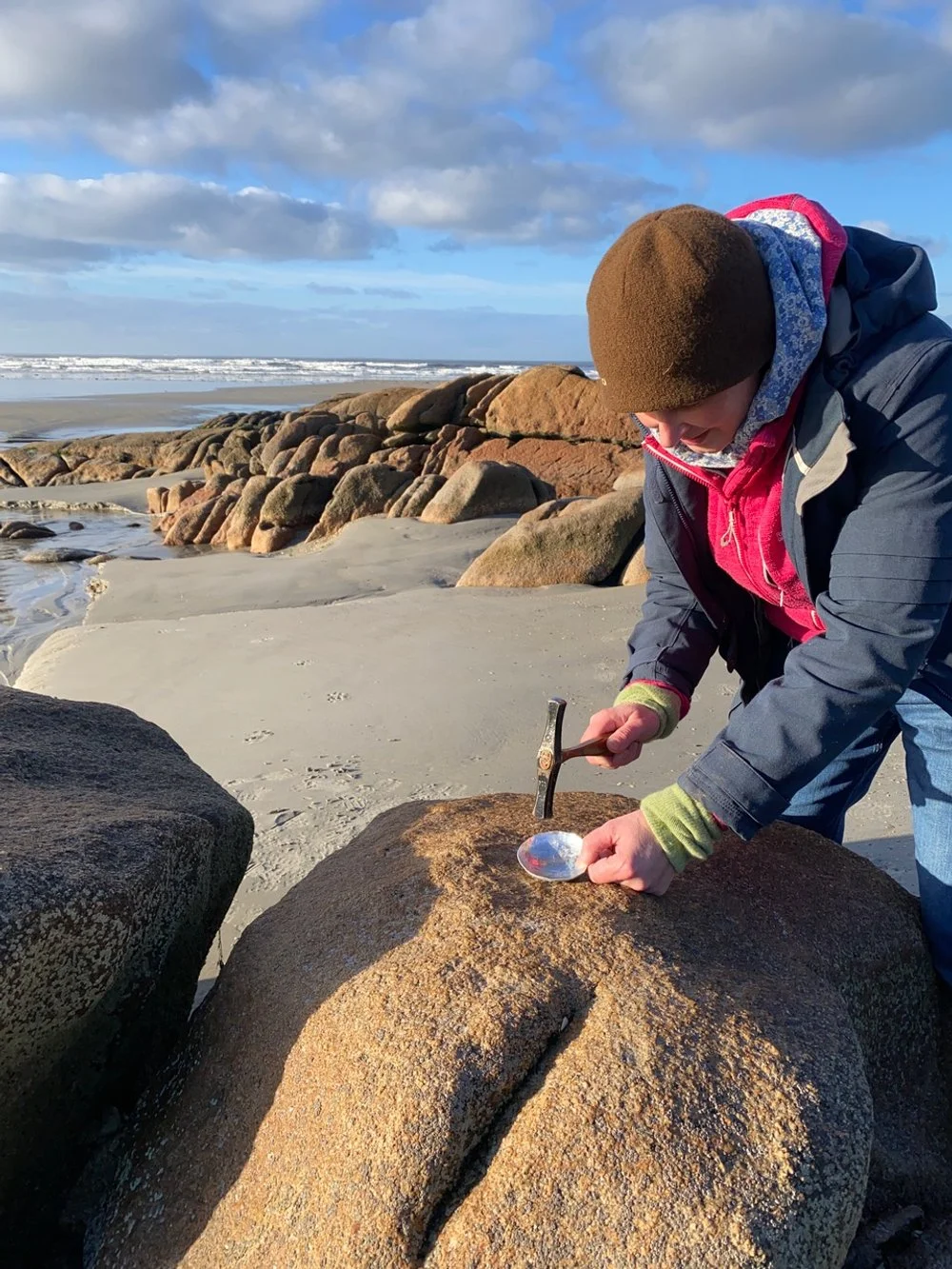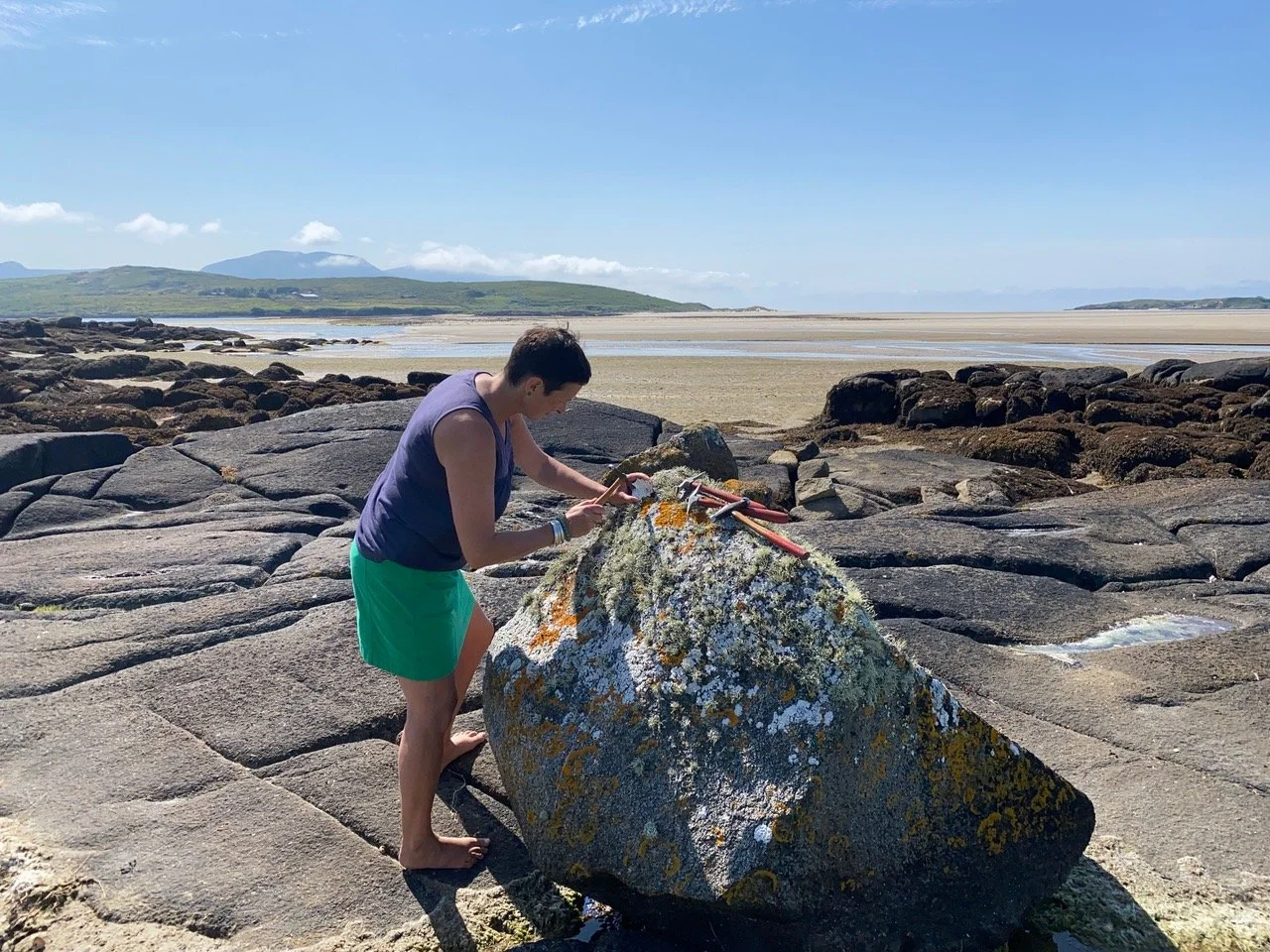 As a silversmith I predominantly hammer over steel forms to create my work, but as my work is influenced by the Irish environment I sometimes bring stone into the workshop and hammer into the hollows or round the stone. With the Royal Dublin Society Irish Craft Bursary I took my hammers outside and explored working directly in the natural rugged landscape. I wanted to challenge my making and see what happens when I hammer fine silver sheet into rocks at the beach. I wanted to explore potential forms created at the intersection of where the Atlantic Ocean meets the Irish coastline.